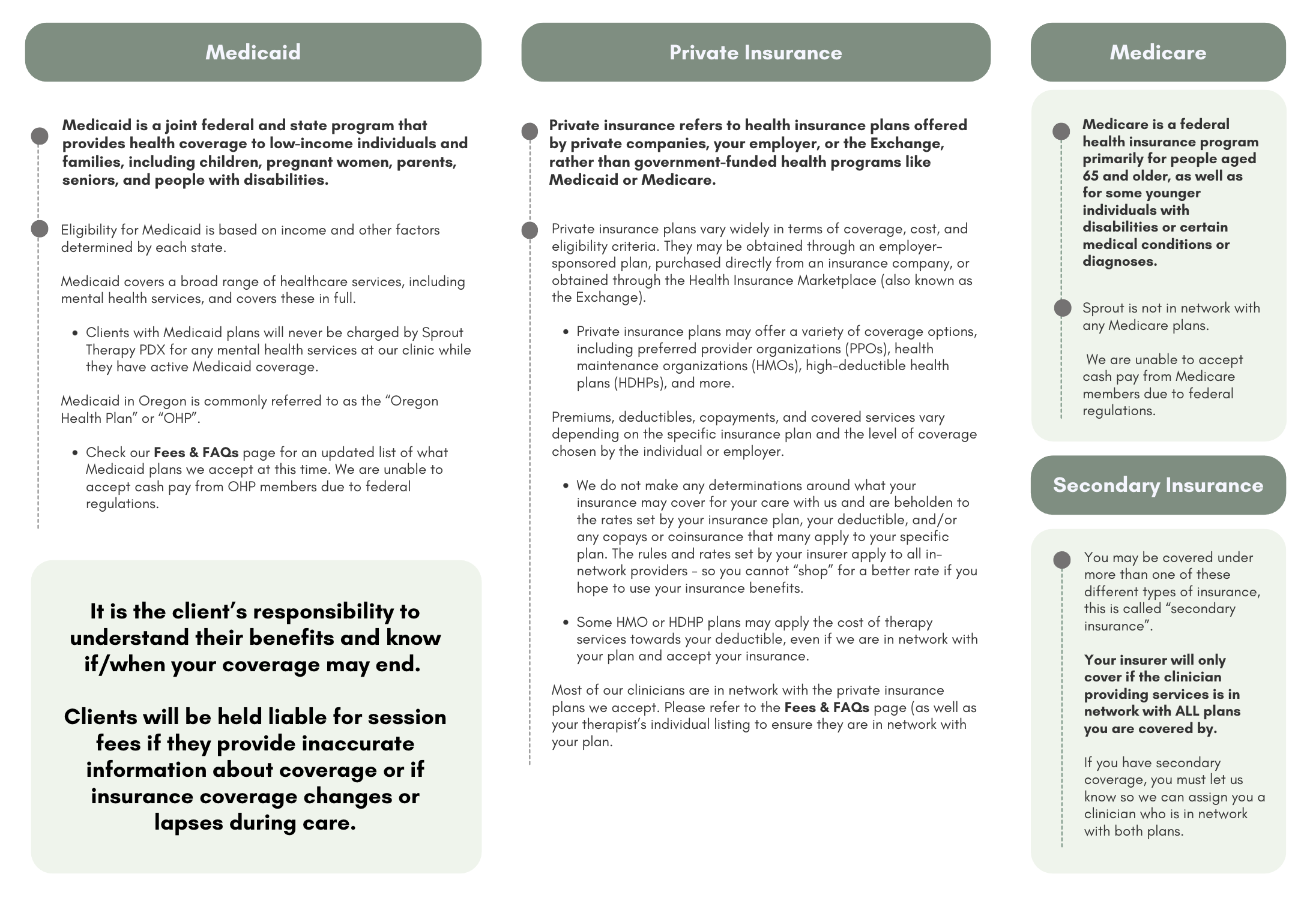 Co-payA fixed fee (e.g., $30) you pay per therapy session.Compare it to your co-pay for a doctor’s office visit. They should be comparable.